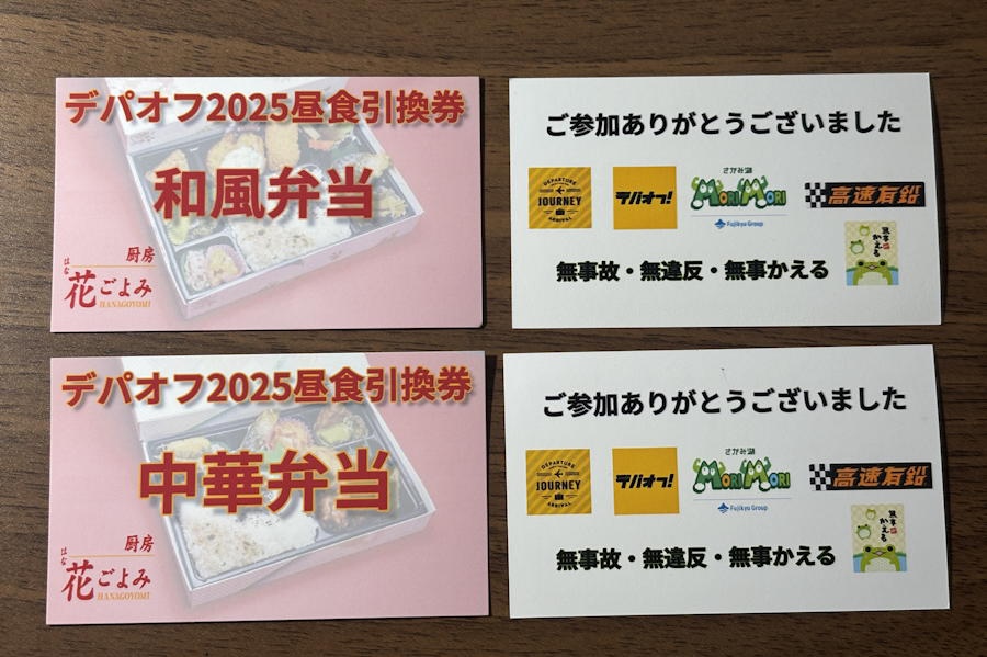 毎年弁当担当スタッフが作る食券!!。「無事故・無違反・無事帰る」癖になりそう。