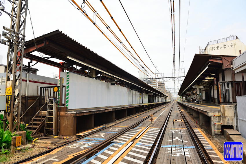 現在駅舎の解体中とあり痛々しくフェンスで囲われた上りホーム。