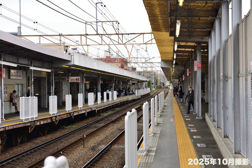 特急停車駅にしては狭く感じるホーム。ホームドアは高架駅完成時に設置なのでしょう。