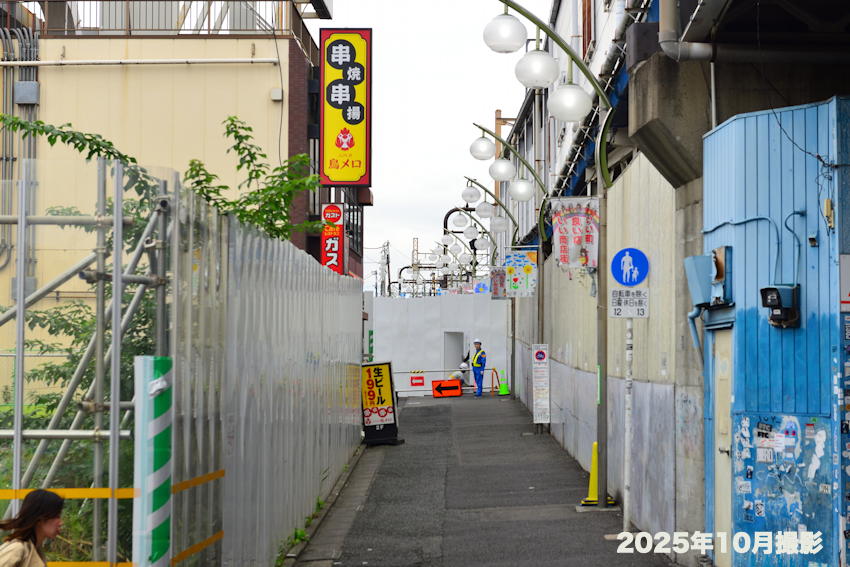 明大前1号踏切から続いていたホーム裏の道路が通れなくなっていました。